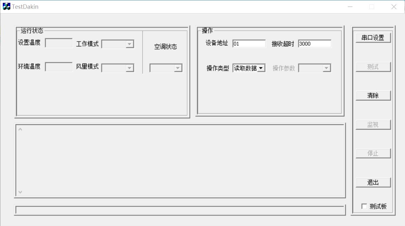 (6) 其他:提供測(cè)試軟件和測(cè)試指令。測(cè)試監(jiān)控板與空調(diào)是否有通訊,可讀取空調(diào)參數(shù)和控制開關(guān)機(jī)!